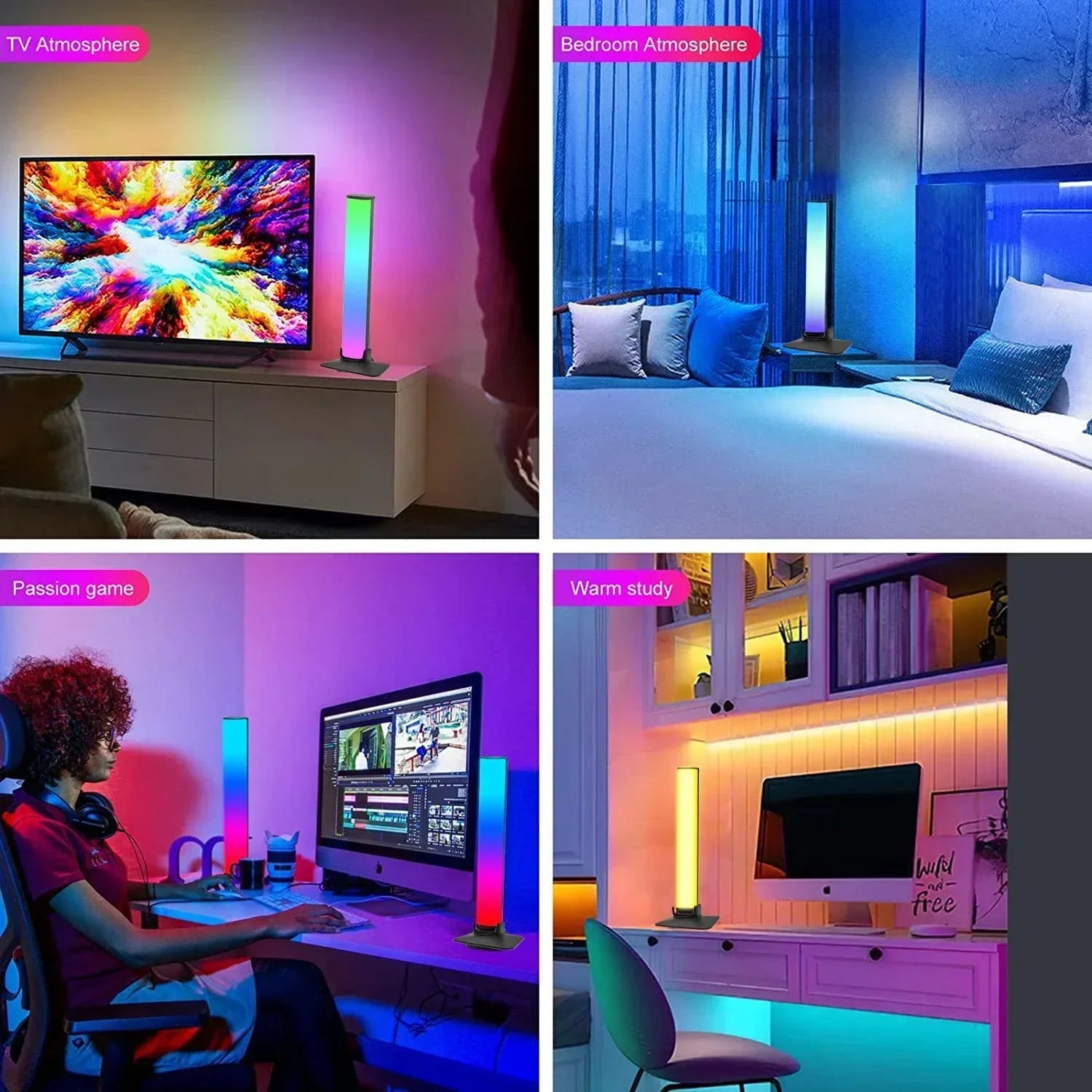 Plasser de to lysstavene bak TV-en, PC-skjermen eller langs hyllen for å skape et omsluttende fargespekter som reagerer på alt du ser og hører. Via Tuya- eller Smart Life-appen velger du mellom over tretti scenemoduser, setter tidsplaner eller grupperer lysene med resten av smarthjemmet. Den innebygde mikrofonen lar lysene danse i takt med musikken, perfekt for gaming-økter, filmkvelder eller fest. Foretrekker du stemmen, kobler du dem til Alexa eller Google-assistenten og sier enkelt “skrur av” eller “bytt til spillmodus” når du setter deg ned. IR-fjernkontrollen gir rask tilgang til lysstyrke- og fargejustering når mobilen ikke er innen rekkevidde. Monteringen tar minutter: enten fester du dem direkte med den ferdigappliserte tapen, eller setter dem i de medfølgende brakettene for fristilt plassering. USB-drift gjør at de får strøm fra TV-ens port, en PC eller en vanlig 5 V-adapter, så du slipper ekstra kabler bak mediebenken. På den måten får teknologiinteresserte brukere en sømløs lysopplevelse som løfter både spill og seriemaraton uten kompliserte oppsett.